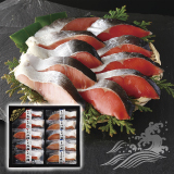 漁吉丸の銀聖新巻鮭姿+いくら醤油漬セット